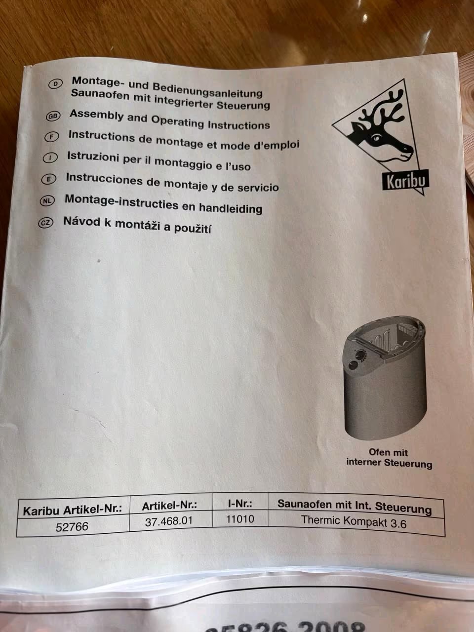 - Celonerezové saunové topení, 3,6 kW s integrovanou řídicí jednotkou