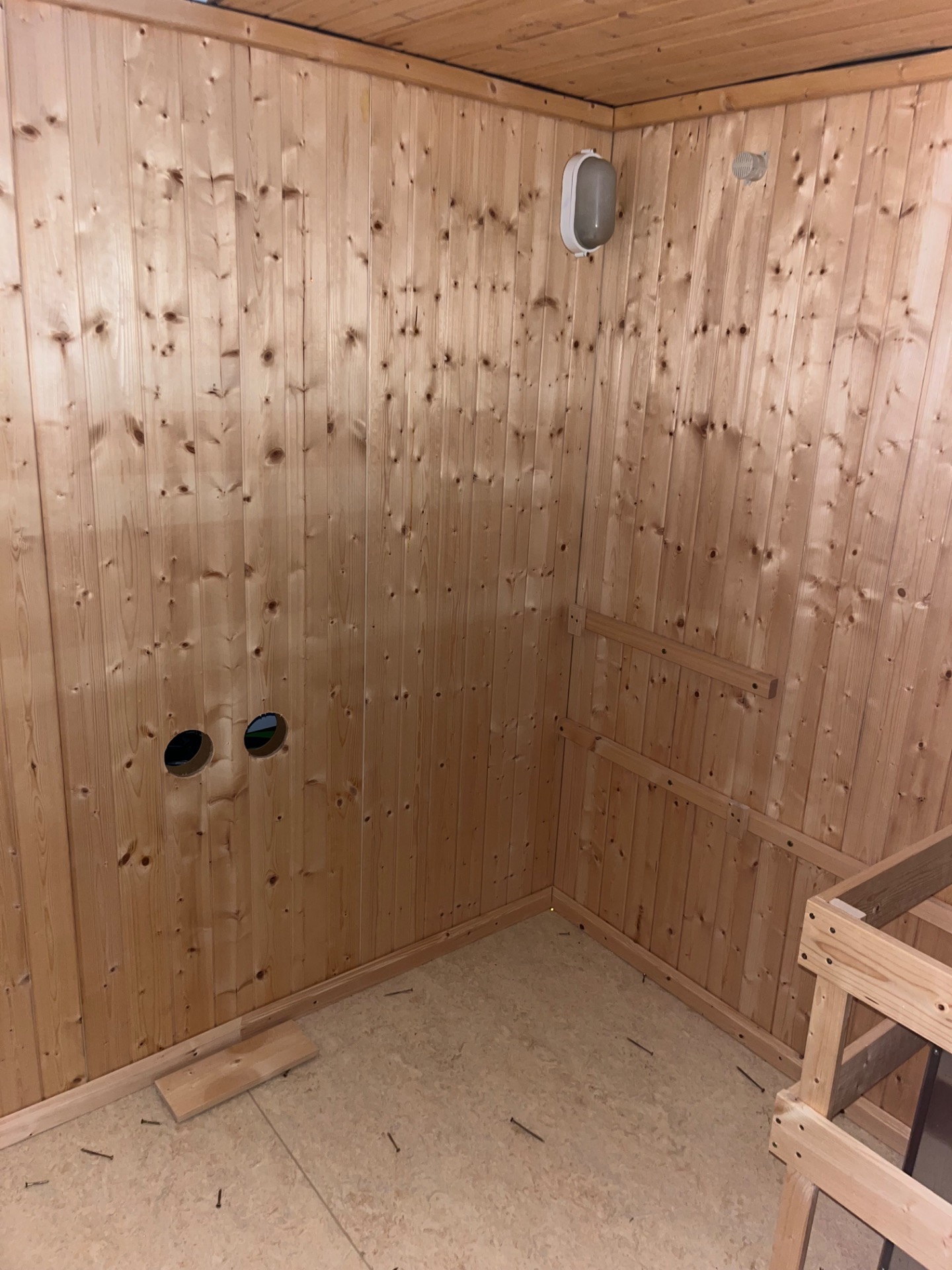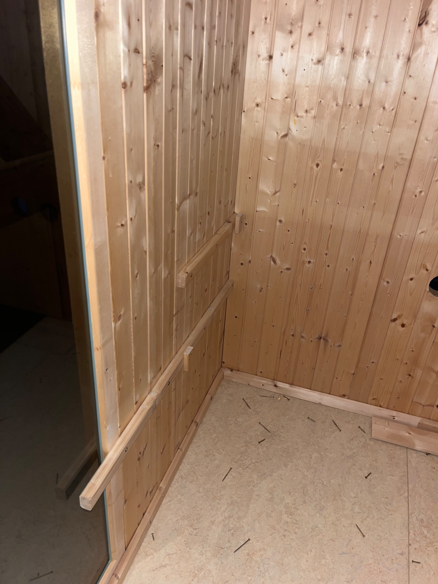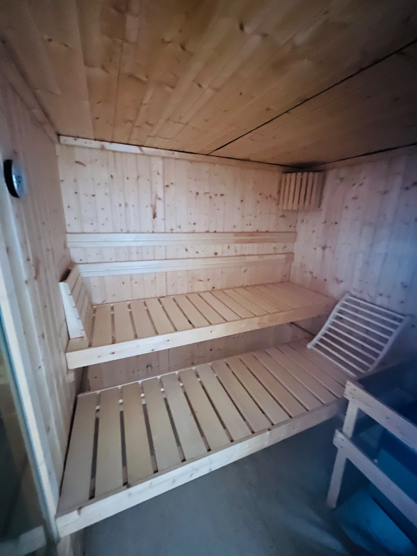 Velmi pěkná sauna.Rozměr 196x172x198cm.Včetne vybavení viz foto.Materiál severský smrk.Zateplení minerální vatou.Lavice osikaDoplnky viz fotoVenkovní podsvícení Kamna orig.Karibu 7,5+1,5 kW s párou