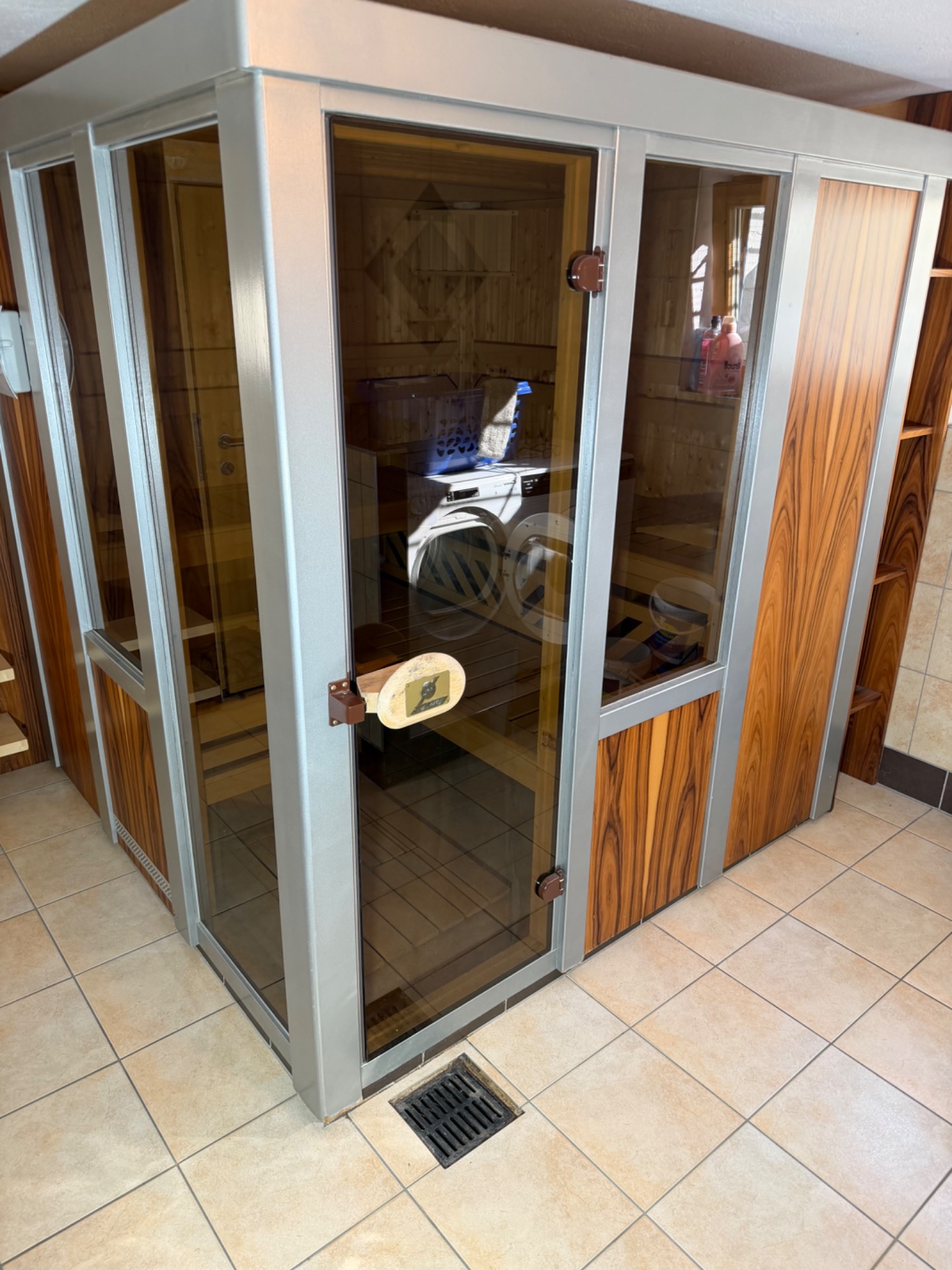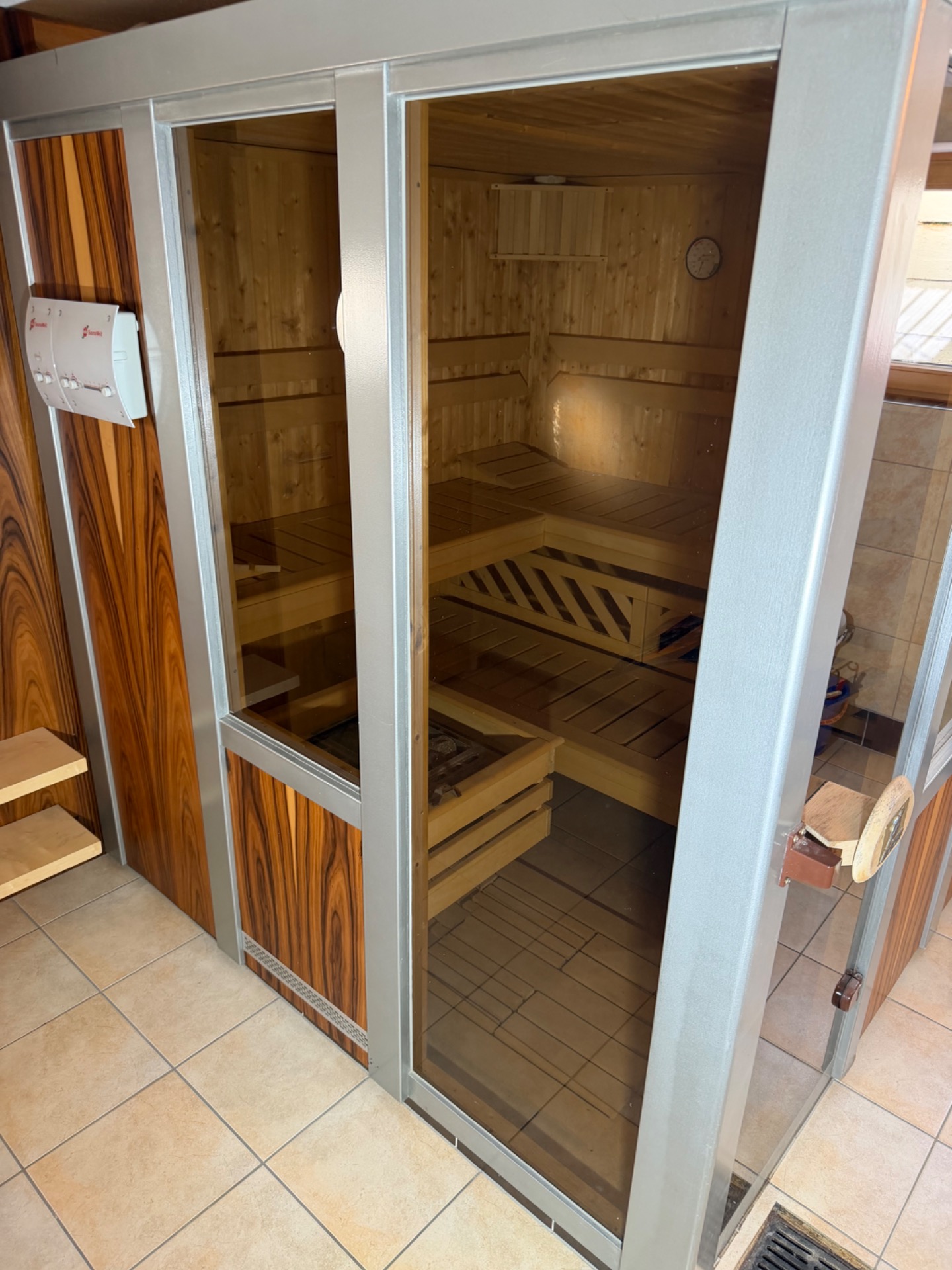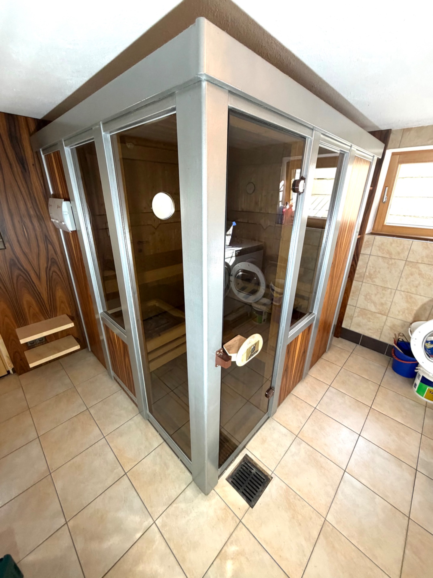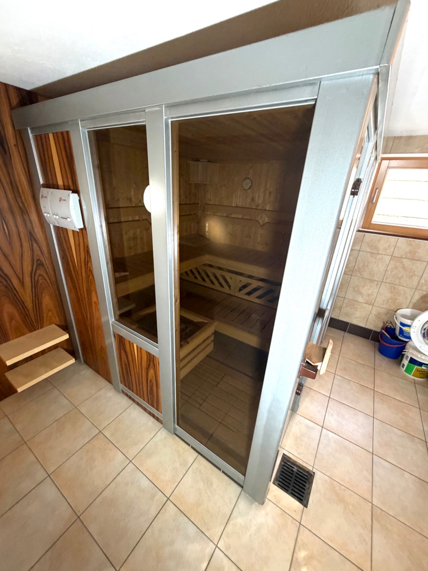 Sauna německého výrobce Weka SaunaWelt.Zateplená minerální vatou+alu folie.Bezpečnostní skla kalená 8 mm bronz.